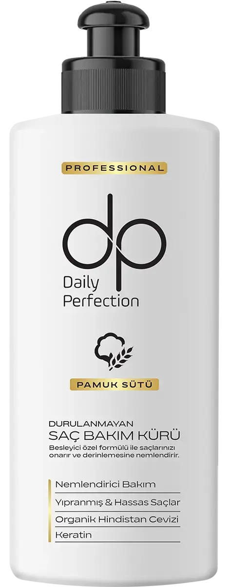 İnceledp Daily Perfection Yıpranmış & Hassas Saçlar için Durulanmayan Saç Bakım Kürü; Organik Hindistan cevizi, Pamuk Sütü ile zenginleştirilmiş özel formülü saçlarınızı besler , onarır ve derinlemesine nemlendirme sağlar. Saçlarınıza ipeksi yumuşaklık, göz alıcı parlaklık ve kusursuz görünüm sağlar. %...