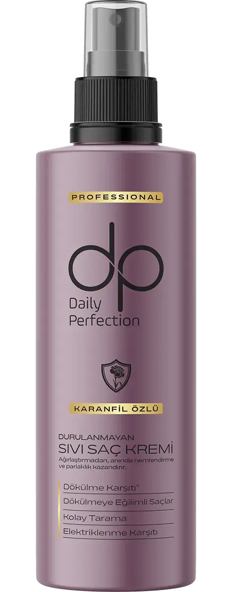 İnceledp Daily Perfection Dökülme Karşıtı Karanfil Özlü Sıvı Saç Kremi; Dökülmeye eğilimli saçlar için geliştirilmiştir. Özel formülü ile saçlarınızın daha güçlü, canlı ve parlak görünmesini sağlar. İçeriğindeki Karanfil Özü ve Biotin; saçlarınızı dipten uca güçlendirerek saç dökülmesini engellemeye yardı...
