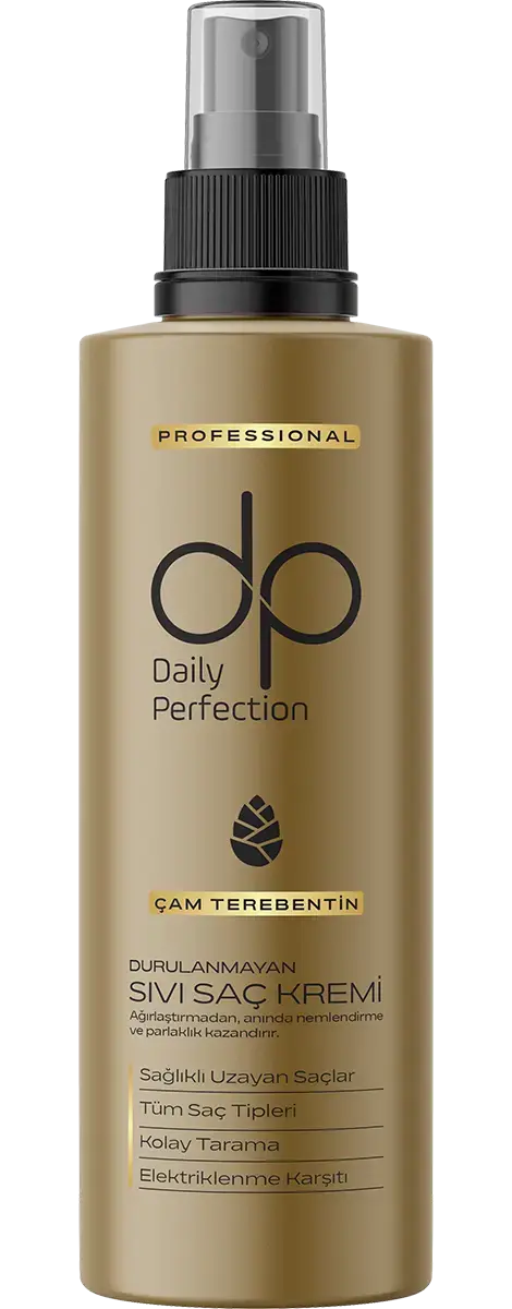 İnceledp Daily Perfection Sağlıklı Uzayan Saçlar Çam Terebentin İçerikli Sıvı Saç Kremi; Tüm Saç Tipleri için geliştirilmiştir. Özel formülü ile saçlarınız daha sağlıklı, parlak ve canlı görünmektedir. İçeriğindeki Çam Terebentin; Saçlarınızın sağlıklı ve hızlı uzamasına yardımcı olur. Saçı ağırlaştırmaz....